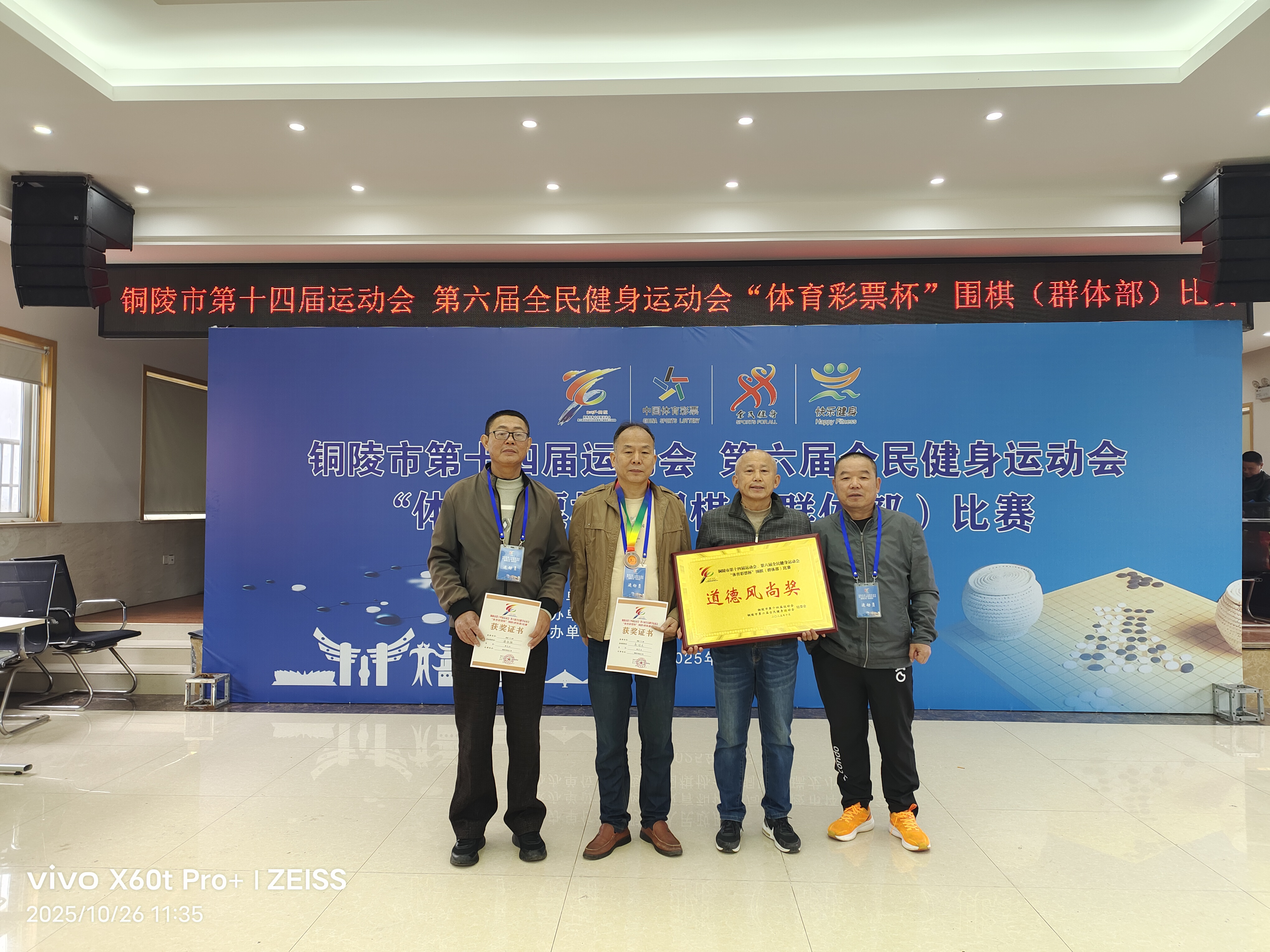 日前,銅陵金鐘物資(銅陵市金鐘物資經營部)代表隊在銅陵市第十四屆運動會圍棋項目比賽中有三位運動員分別奪得個人第二名、第三名及第七名,取得了非常好的成績,榮獲了大賽組委會頒發的“道德風尚獎”。
